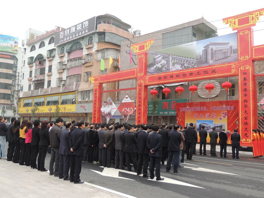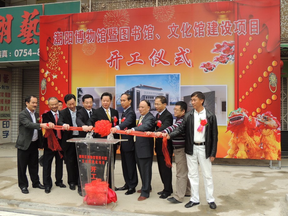 仪式上,区委常委、常务副区长陈邦津宣布潮阳博物馆暨图书馆、文化馆建设项目开工。出席仪式的领导和嘉宾姚欣耀、周镇松、吴开松、陈新造、王小辉、李仲生、曹嘉灏、林少青、姚甲隆、翁通明为项目开工建设推动吉祥杆。