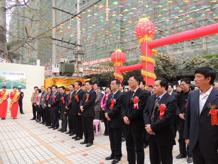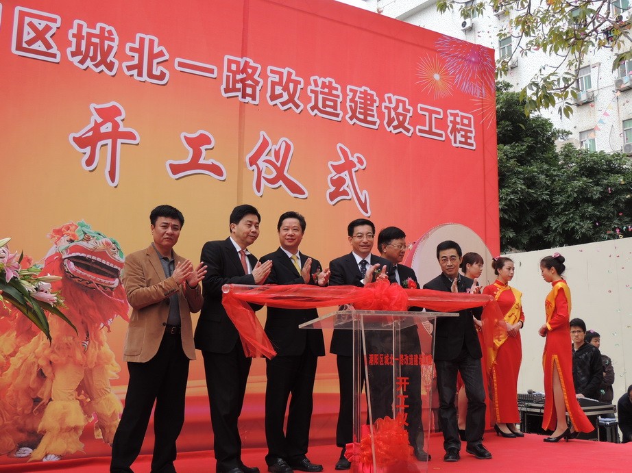 仪式上,区委副书记张锡潮宣布城北一路改造建设项目开工建设。出席仪式的市、区领导和嘉宾周镇松、陈新造、陈邦津、吴军、郭予明、肖希武为项目开工建设推动吉祥杆。