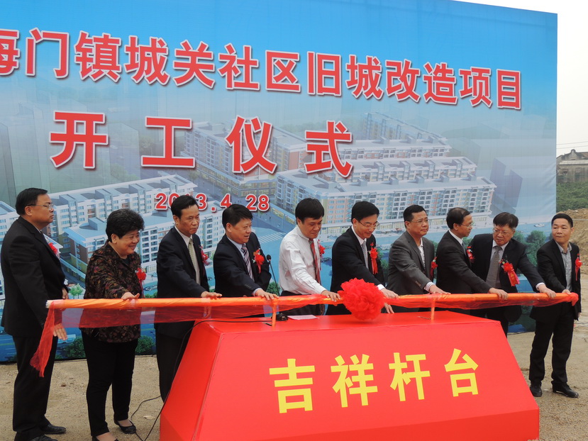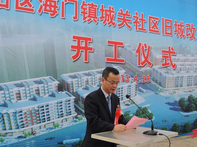 区委常委、区政府党组副书记姚佐雄代表区委区政府对项目的动工表示祝贺。他指出,城关社区旧城改造项目的开工建设,对于改善海门群众的居住条件,提升当地群众生活水平,具有十分积极的作用。希望海门镇和区有关职能部门切实增强服务意识,齐心协力加快项目建设。希望项目建设单位精心组织,科学安排,严把质量关,努力把项目建成群众满意的安居工程、放心工程、精品工程。