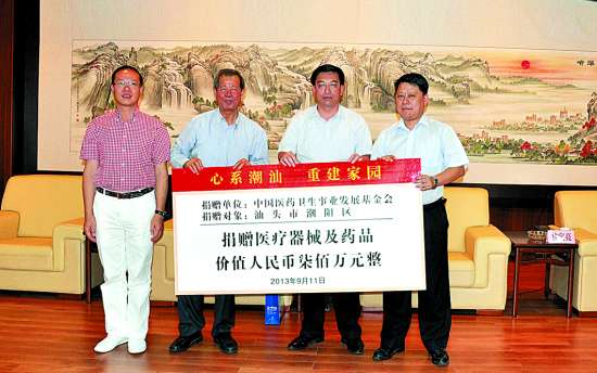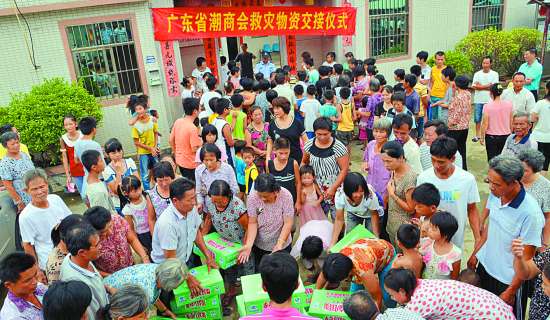 潮阳的灾情日夜牵动着海内外乡贤的心,国内国外的潮团组织和乡贤纷纷慷慨解囊、捐款捐物。中国医药卫生事业发展基金会、广东省潮人海外联谊会、广东潮商公益基金会、北京潮人商会、深圳潮商集团、上海潮联会、海南潮汕商会、石家庄潮汕商会,泰国、新加坡、新西兰、香港等境外潮人社团,陈经纬、陈才雄、郑开德、陈亿武、陈桂洲等团体和个人纷纷捐资捐物。至9月15日,全区共接受钱物3355.8 万多元,其中陈亿武先生个人捐款捐物700万元。