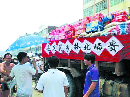 贵屿镇在自身受灾严重的情况下,积极向相邻的潮南区陈店镇、司马浦镇伸出救助援手,利用橡皮艇、龙船等工具,沿着练江堤边的小路,打通了一条生命通道,将大批救灾物资输送过去,还运送解救了对岸2000多名受困群众,并在贵屿镇内设置多个临时安置点,转移来自陈店镇的灾民达1万多名。为了维护救灾生命线的畅通,潮阳区、贵屿镇两级政府及公安部门还相继组派了200多人次维持秩序,日夜守护这条“生命线”。