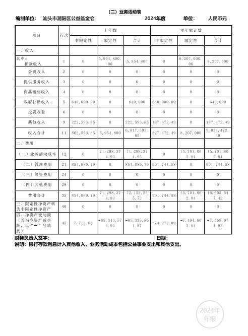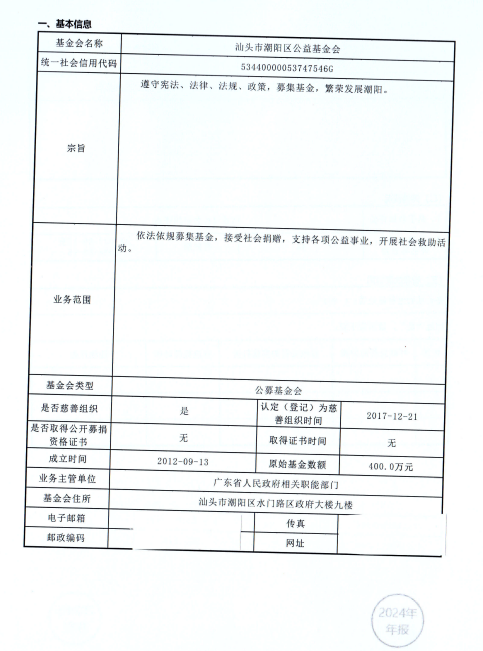 汕头市潮阳区公益基金会2024年度工作报告 (节录)
