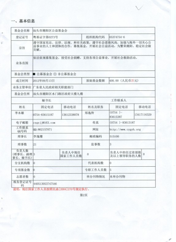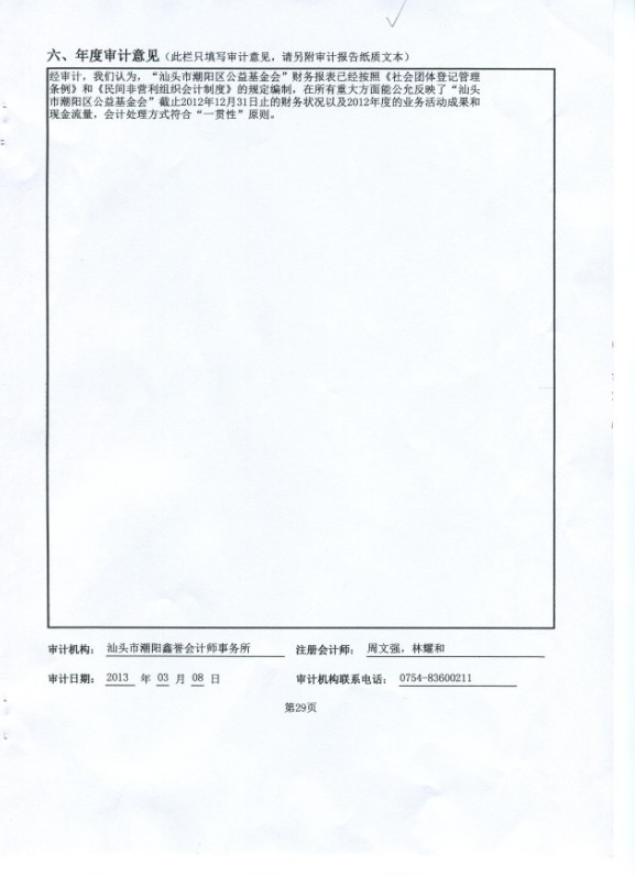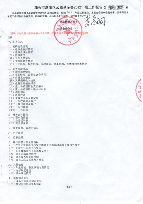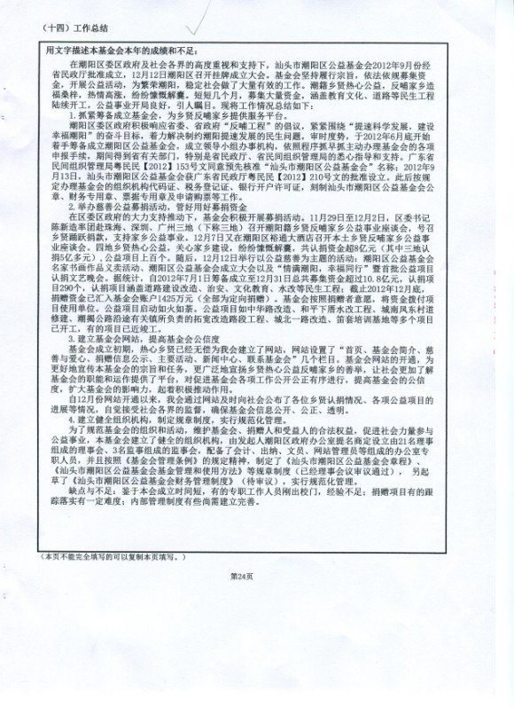 汕头市潮阳区公益基金会2012年度工作报告(摘要)