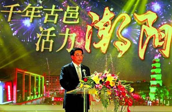 潮阳区委书记陈新造在“千年古邑·活力潮阳”迎春联欢晚会上致辞。