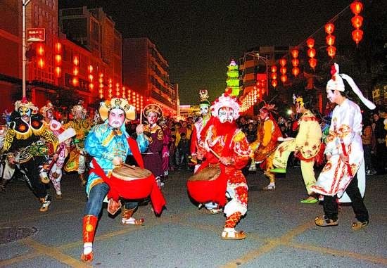 潮阳区把第三届迎春文化节系列活动与正在开展的群众路线教育实践活动紧密结合,把实施文化惠民工程作为建设美丽幸福新潮阳的重要抓手,动员各方文化力量,采取多种艺术形式,融汇多样特色文化,在欢庆和互动中接地气、庆佳节、乐万家、惠民生。迎春文化节延续半个多月,全区共举办文艺活动80多场次,群众真正成为活动的主角,处处可以看到专业演员和民间艺人同台表演,非遗传承人和文艺爱好者同场竞技,英歌舞、笛套音乐表演、大家乐舞台、百姓歌手赛、象棋擂台等文艺节目,都是群众演,群众看。潮阳城区大街小巷人潮如涌,群众既是演员也是观众,仅元宵节当晚就有40多万群众上街观看灯会和文艺节目,人们热情参与,流连忘返,乐在其中,共享节日文化盛宴。