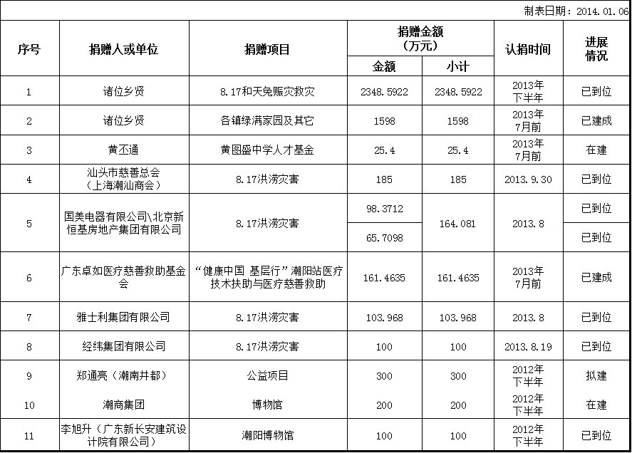 潮阳区“12.12”公益系列活动名书画作品爱心拍卖情况表