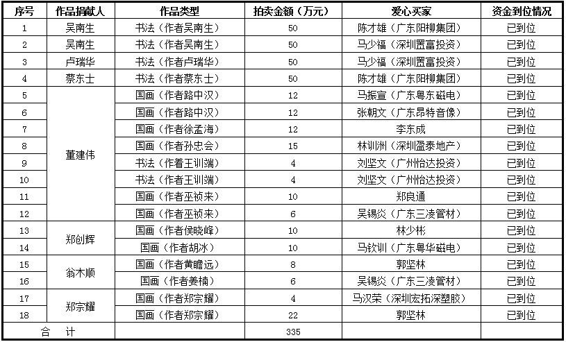 潮阳区“12.12”公益系列活动名书画作品爱心拍卖情况表