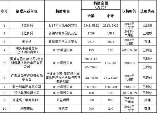 乡贤通过各单位认捐项目情况表