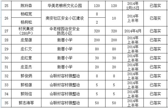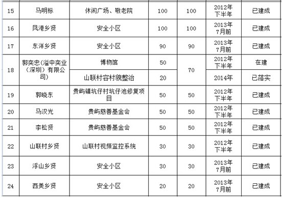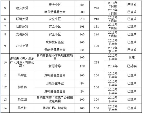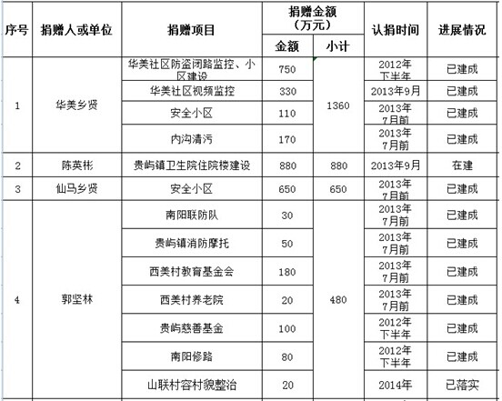 河溪镇乡贤认捐项目进展情况表