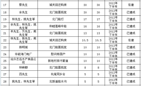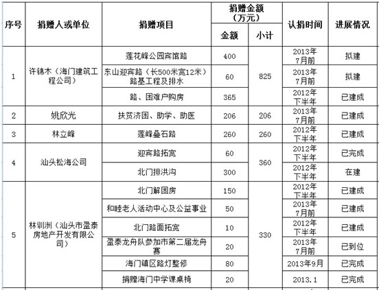 海门镇乡贤认捐项目进展情况表