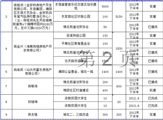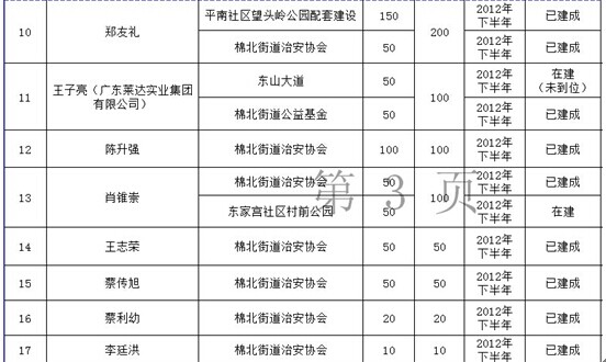 城南街道乡贤认捐项目进展情况表