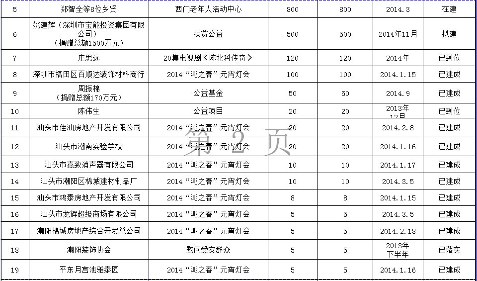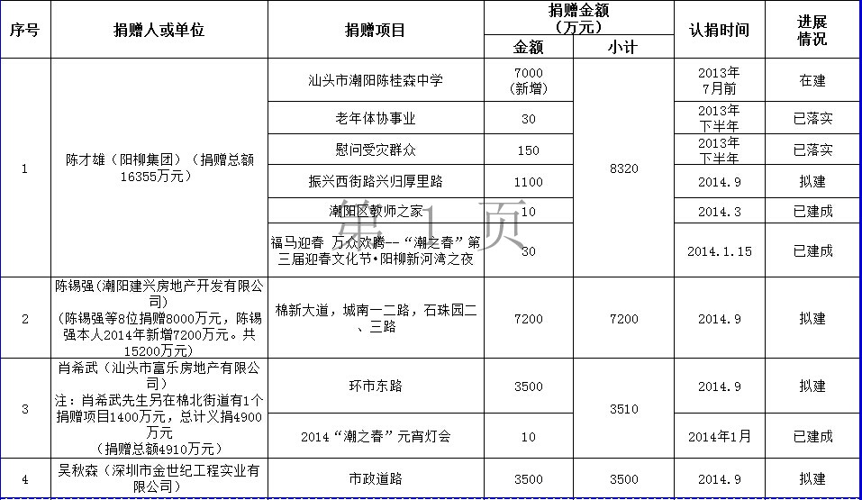 西胪镇乡贤反哺家乡建设认捐项目进展情况表