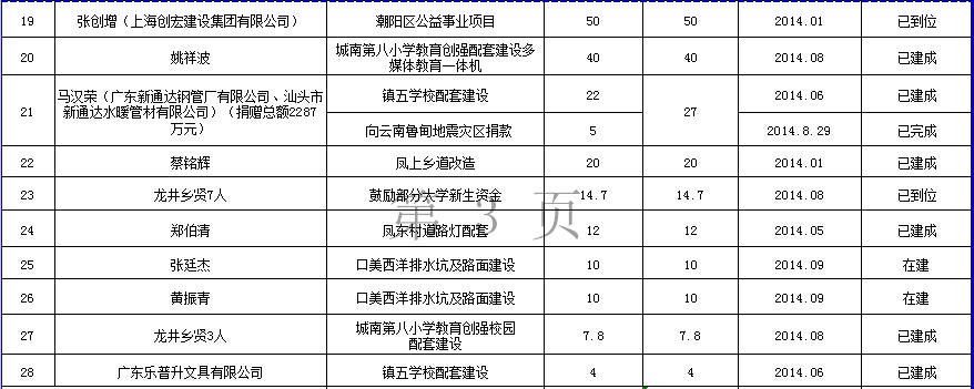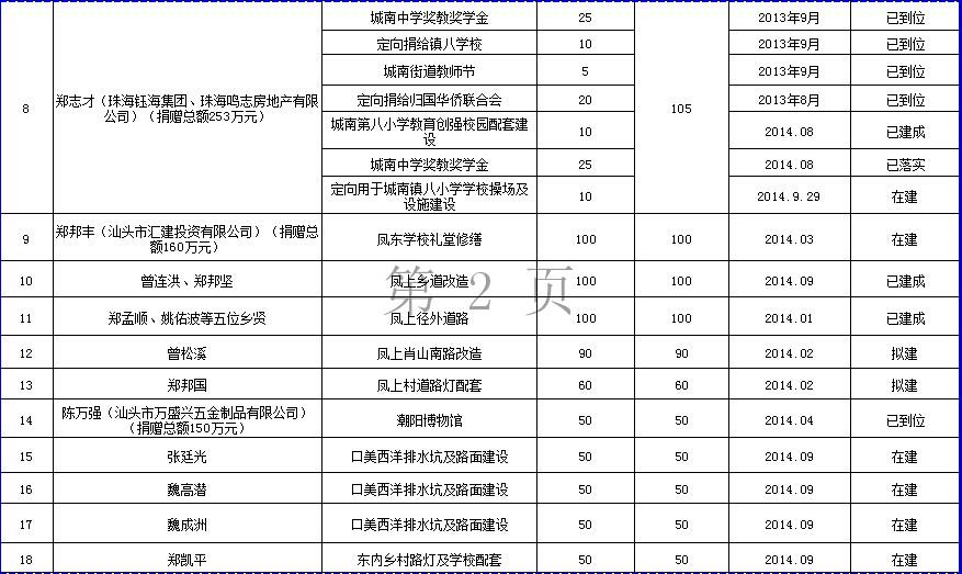 城南街道乡贤反哺家乡建设认捐项目进展情况表