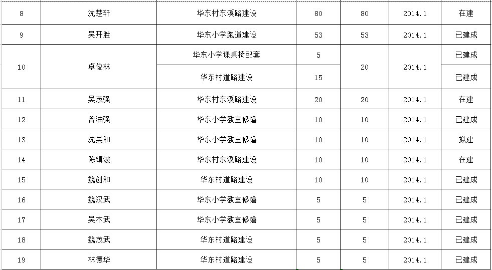 河溪镇乡贤反哺家乡建设认捐项目进展情况表