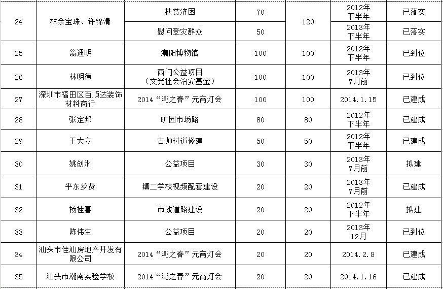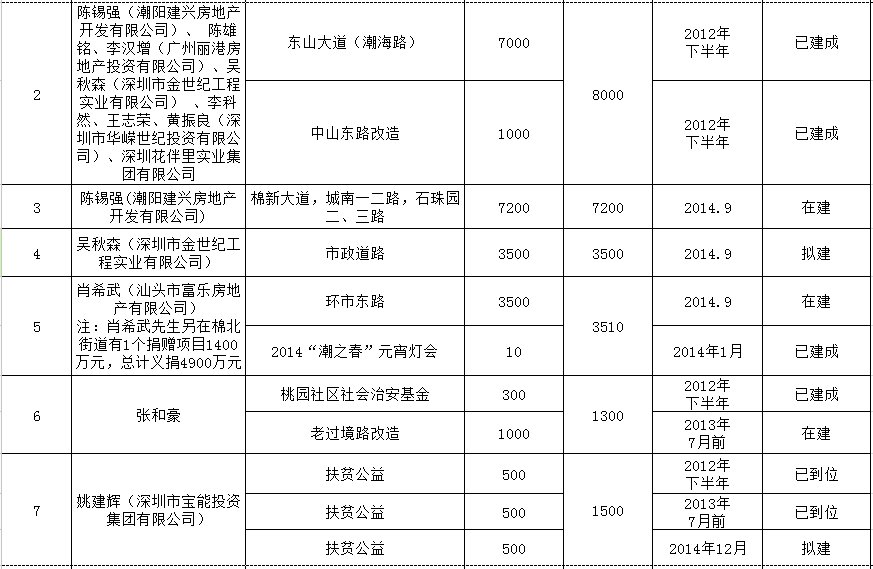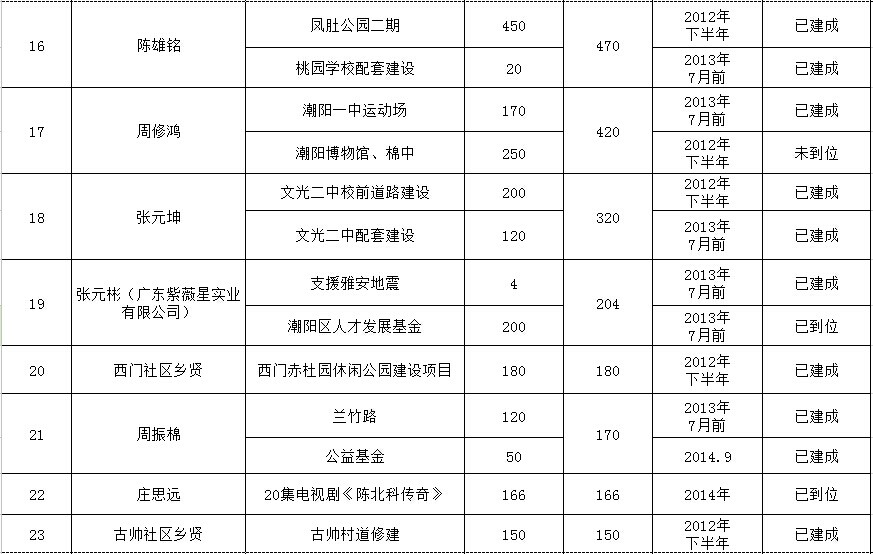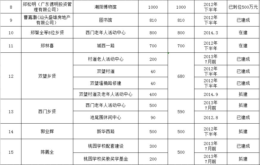 城南街道乡贤反哺家乡建设认捐项目进展情况汇总表