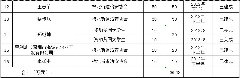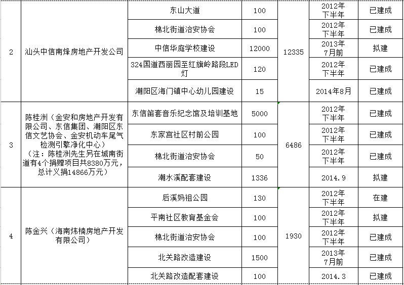 城南街道乡贤反哺家乡建设认捐项目进展情况汇总表