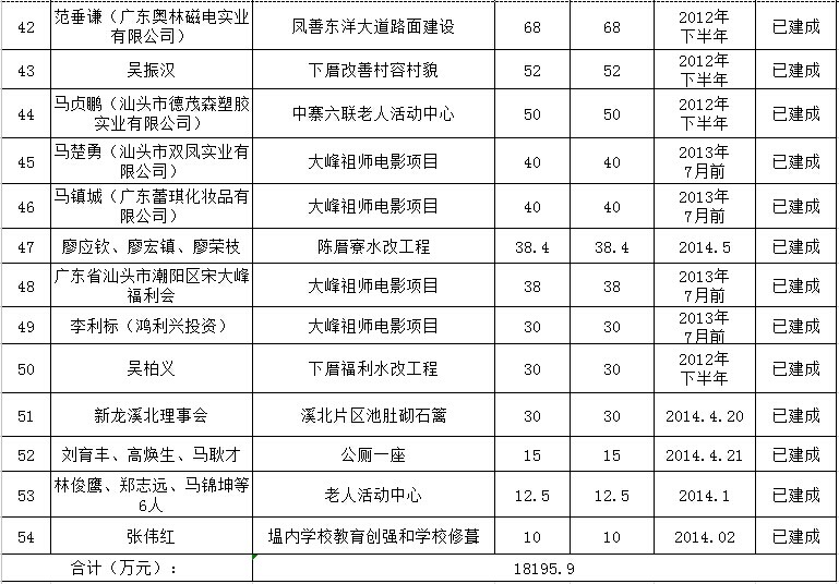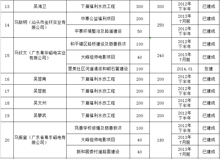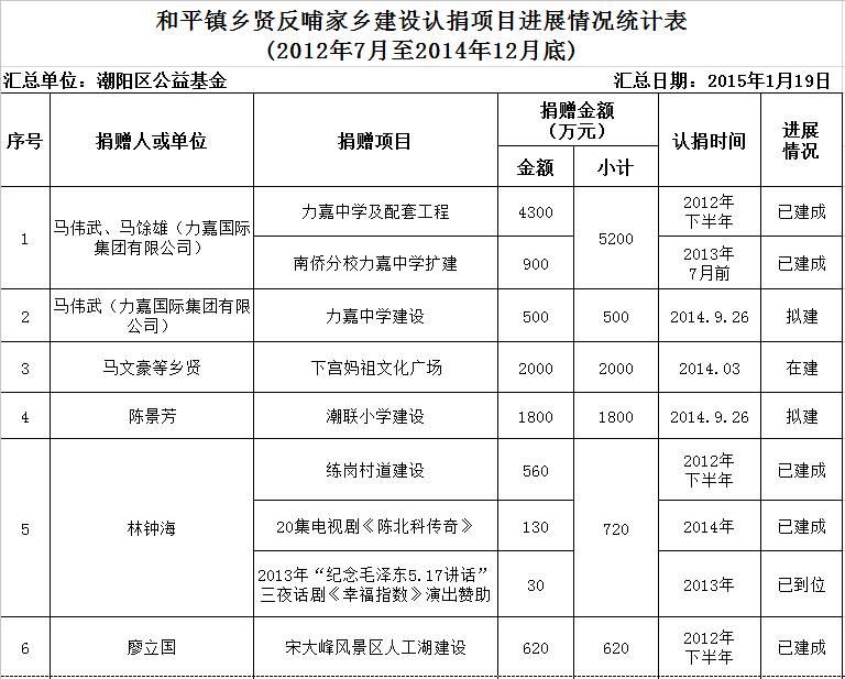 和平镇乡贤反哺家乡建设认捐项目进展情况汇总表