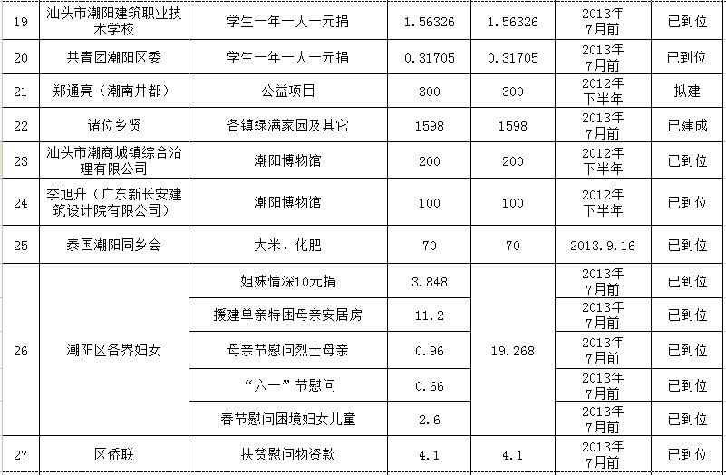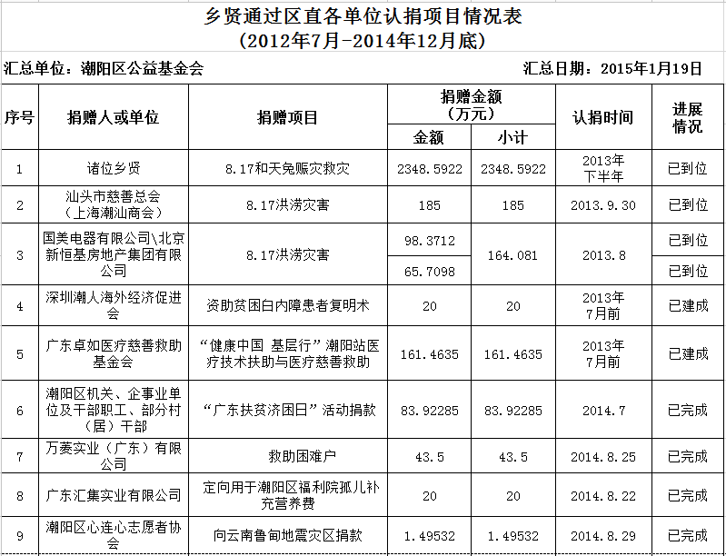 乡贤通过区直各有关单位认捐项目进展情况汇总表