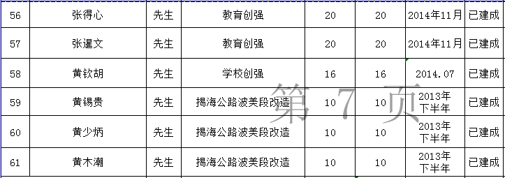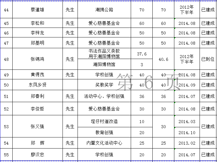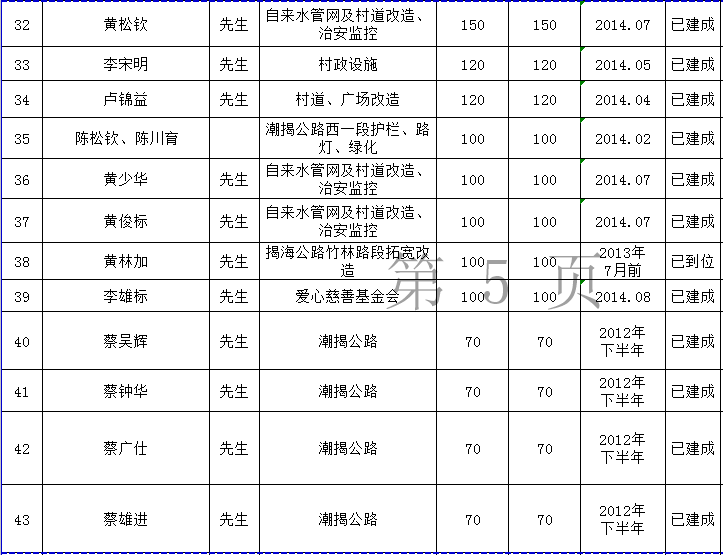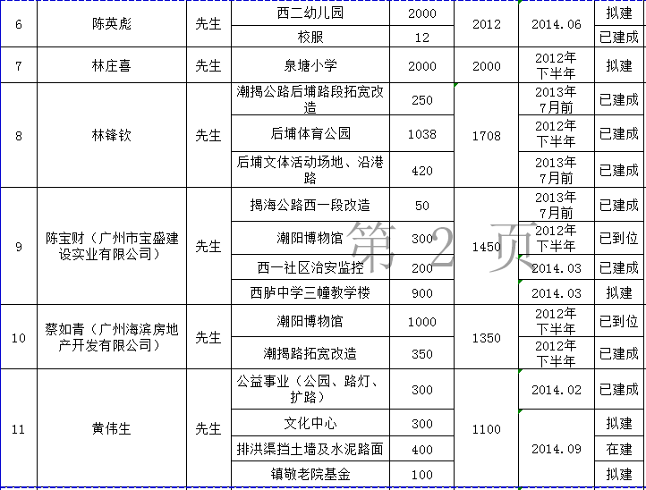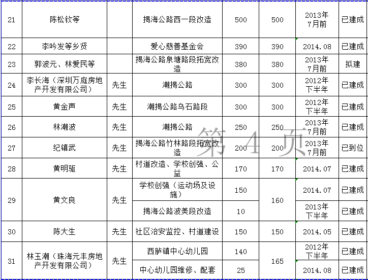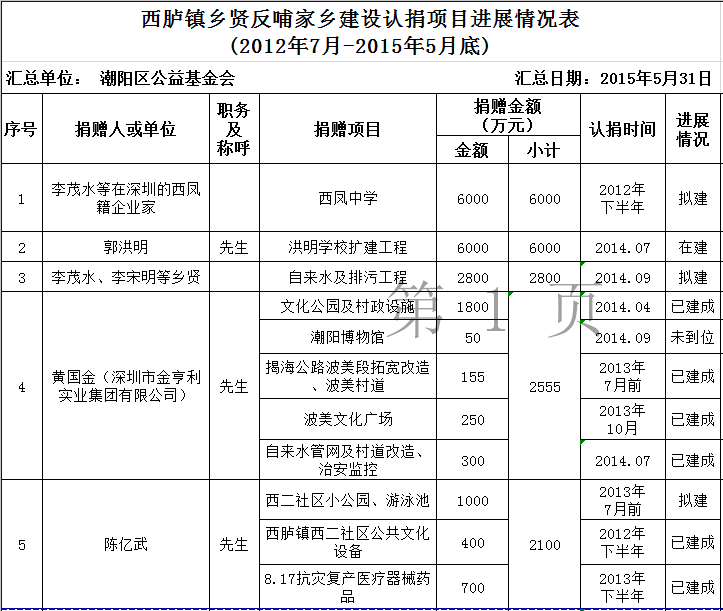 关埠镇乡贤反哺家乡建设认捐项目进展情况统计表