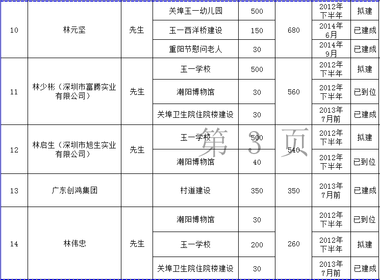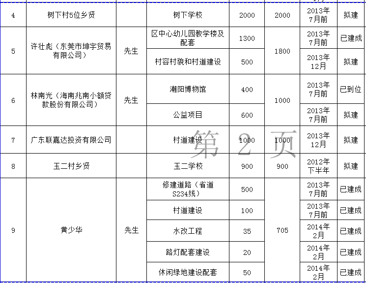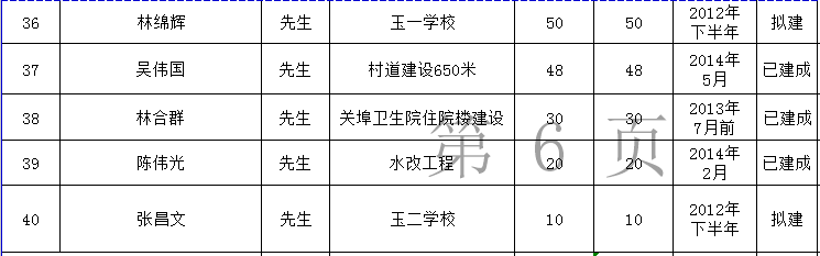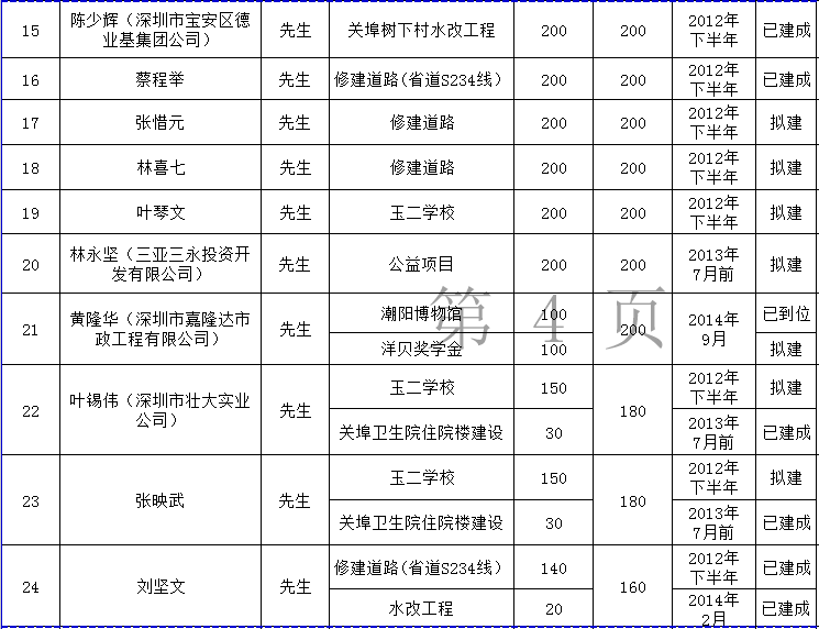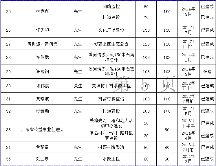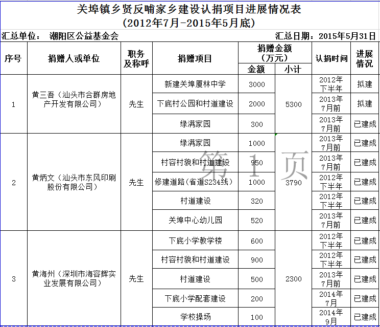 关埠镇乡贤反哺家乡建设认捐项目进展情况统计表