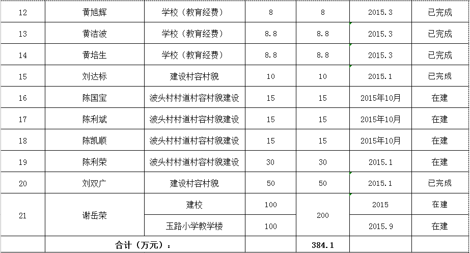 关埠镇乡贤反哺家乡建设认捐项目情况统计表