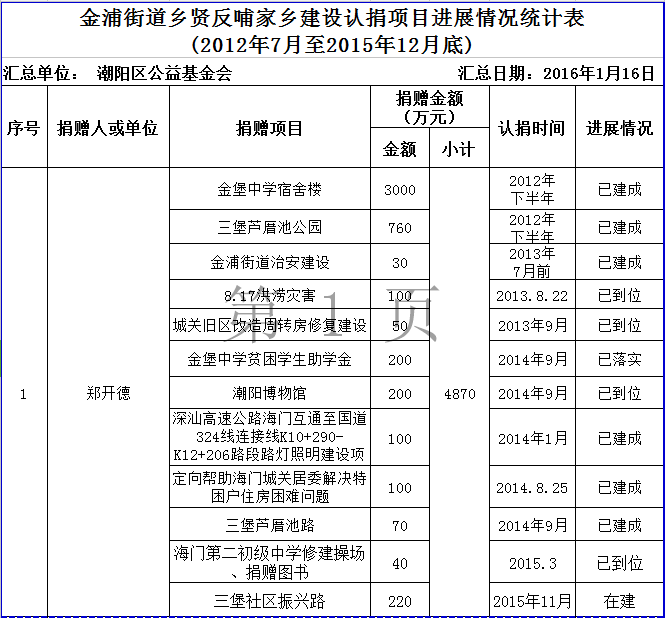 下一篇: 海门镇乡贤反哺家乡建设认捐项目进展情况统计表 (2012年7月至2015年12月底)