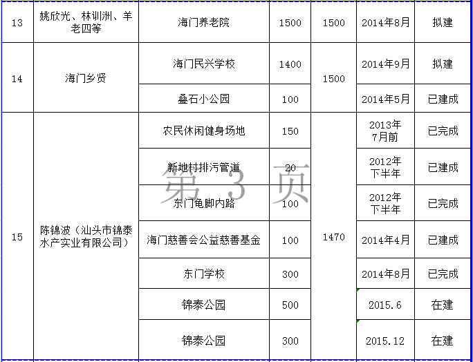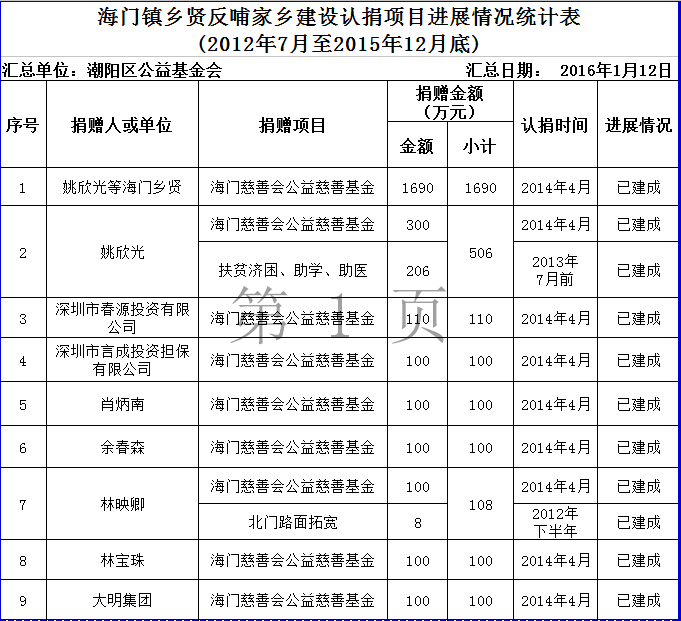下一篇: 和平镇乡贤反哺家乡建设认捐项目进展情况统计表 (2012年7月至2015年12月底)