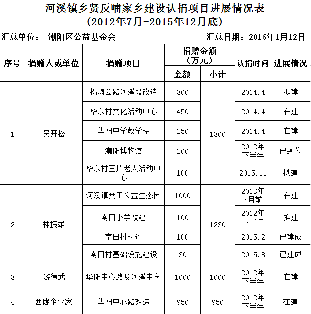 下一篇: 西胪镇乡贤反哺家乡建设认捐项目进展情况表 (2012年7月-2015年12月底)