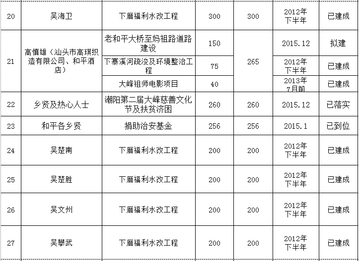 上一篇: 海门镇乡贤反哺家乡建设认捐项目进展情况统计表 (2012年7月至2016年6月底)