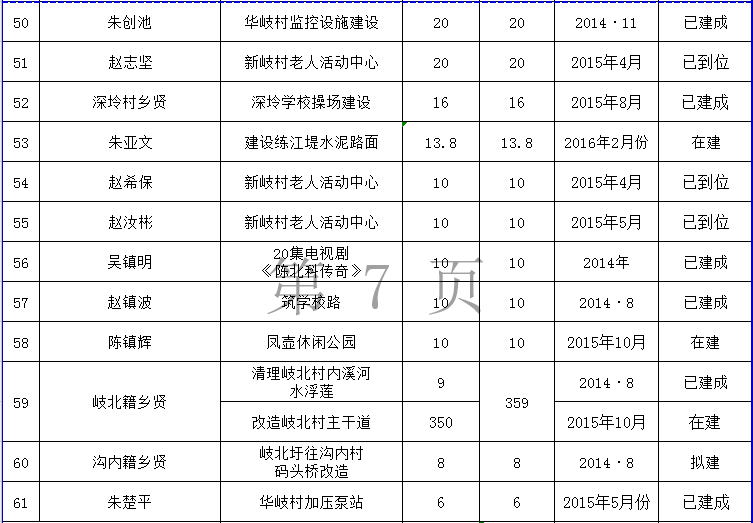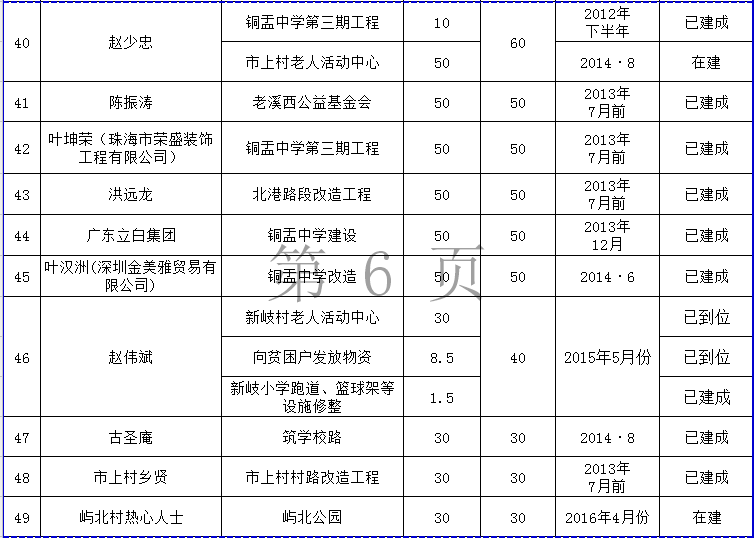 上一篇: 和平镇乡贤反哺家乡建设认捐项目进展情况统计表 (2012年7月至2016年6月底)