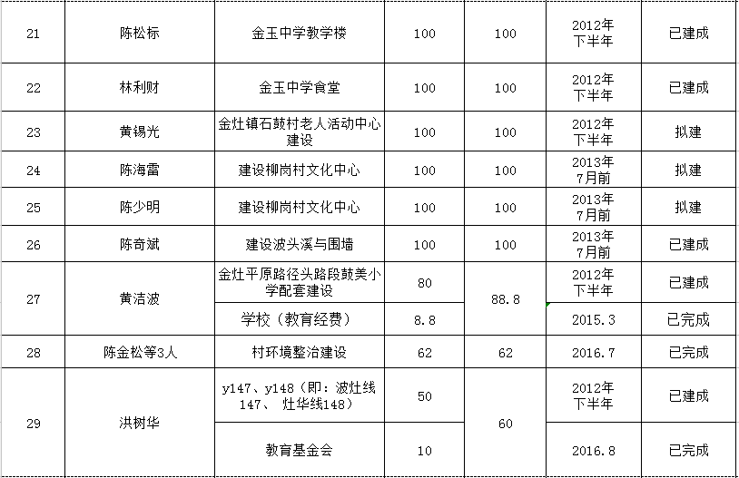 上一篇: 关埠镇乡贤反哺家乡建设认捐项目进展情况表 (2012年7月-2016年12月底)