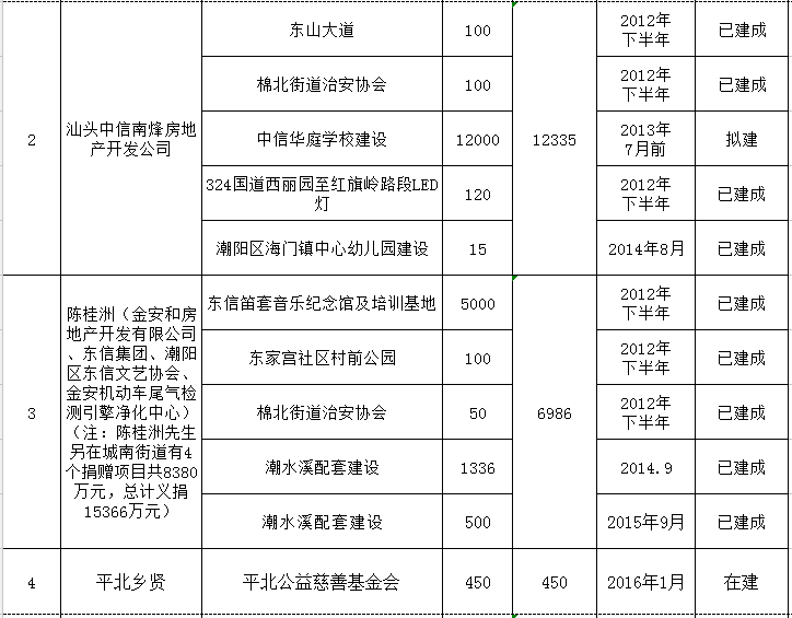 城南街道乡贤反哺家乡建设认捐项目进展情况统计表