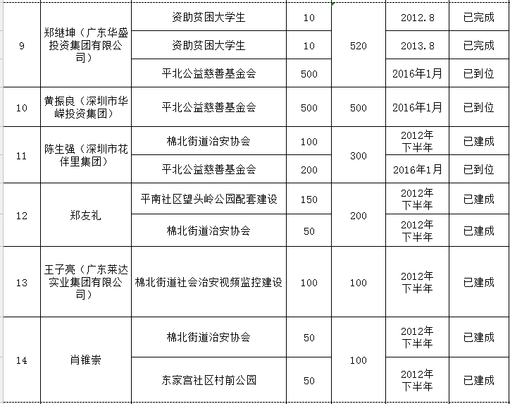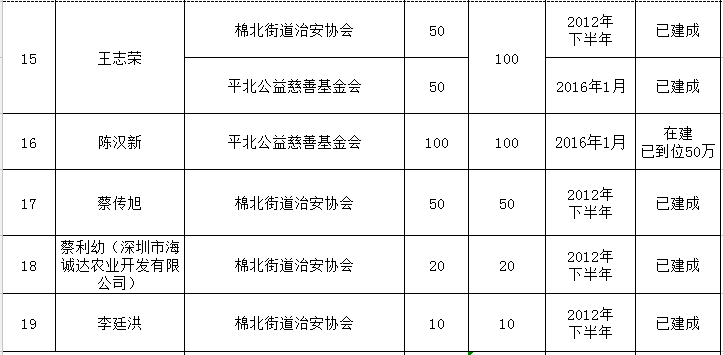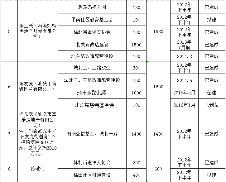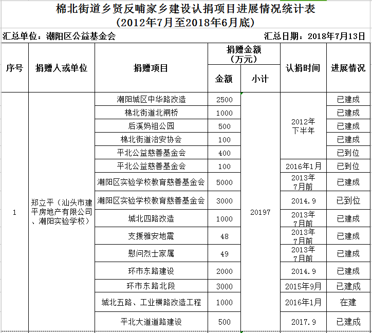 金浦街道乡贤反哺家乡建设认捐项目进展情况统计表