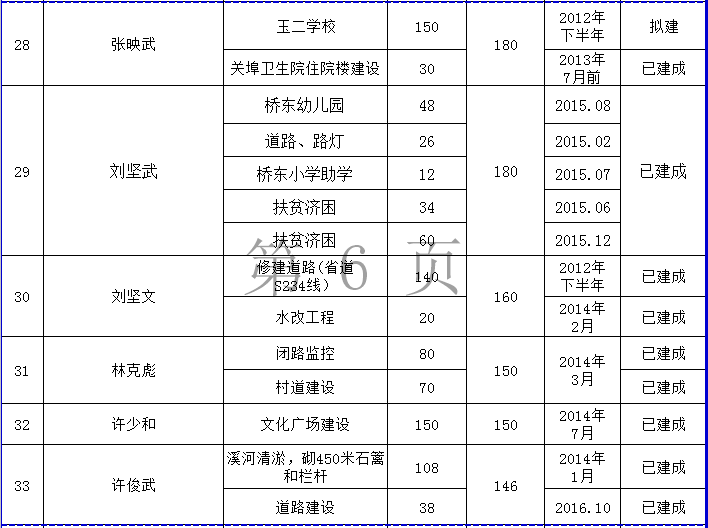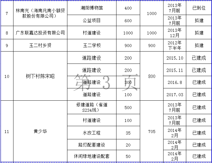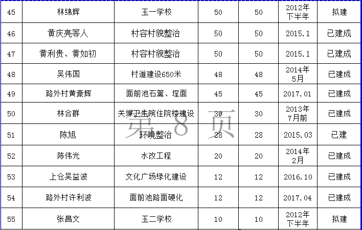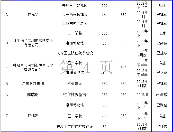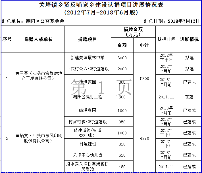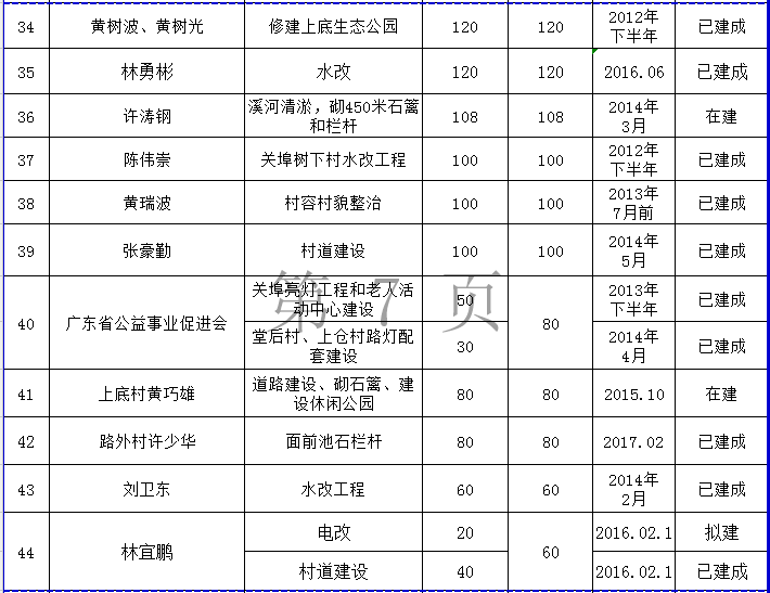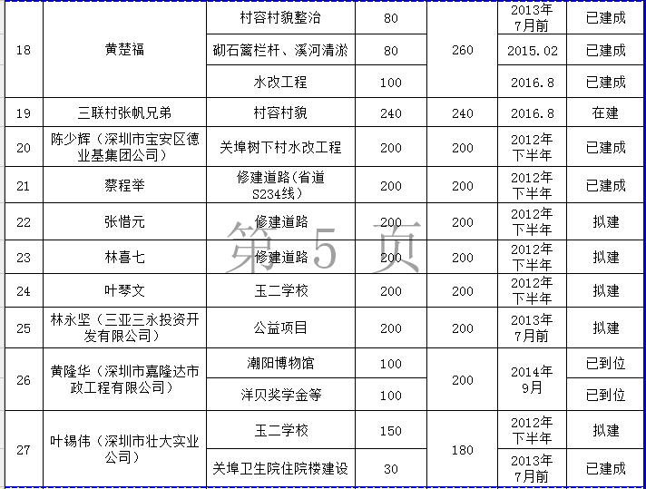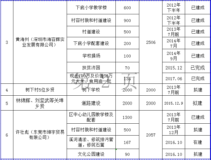 关埠镇镇乡贤反哺家乡建设认捐项目进展情况统计表