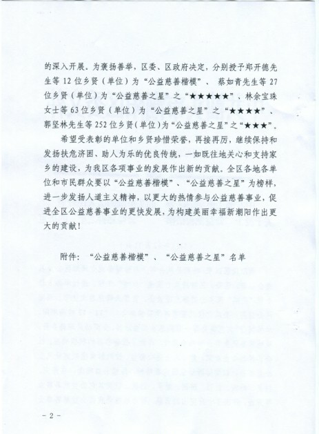 关于授予“公益慈善楷模”、“公益慈善之星”的决定